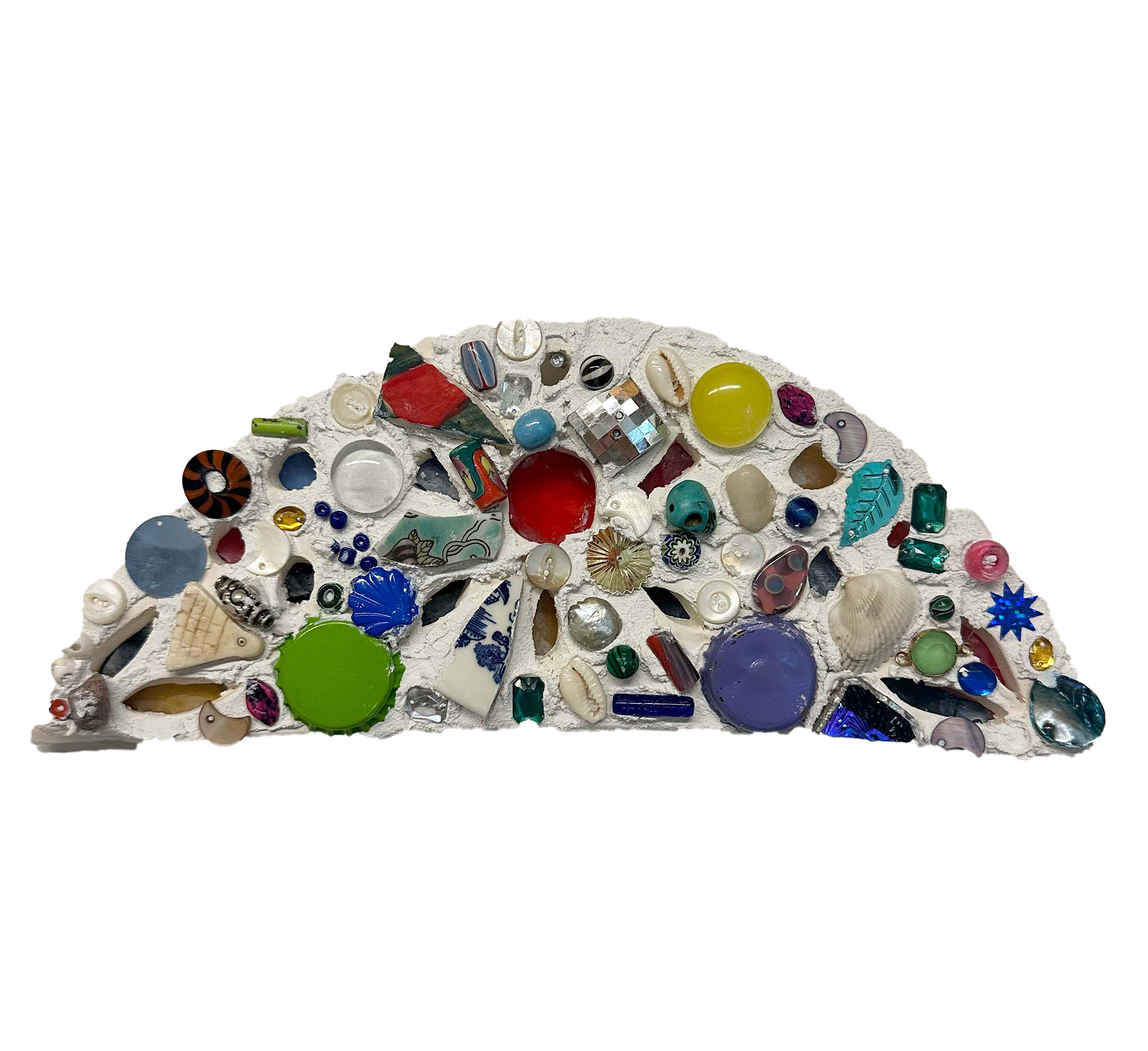 Inspired by folk art, I use mediums that are readily available to me, which often is a mixture of secondhand materials. The innate desire humans have to create and decorate their environments, as seen in grottos and shrines, influences me to create work used to reimagine my surroundings. I see this as a way to gain control of my environment, where I would normally be subject to cyclical patterns out of my control. I see my work as a way to transcend through reality into a manifestation of eccentric and whimsical surroundings.